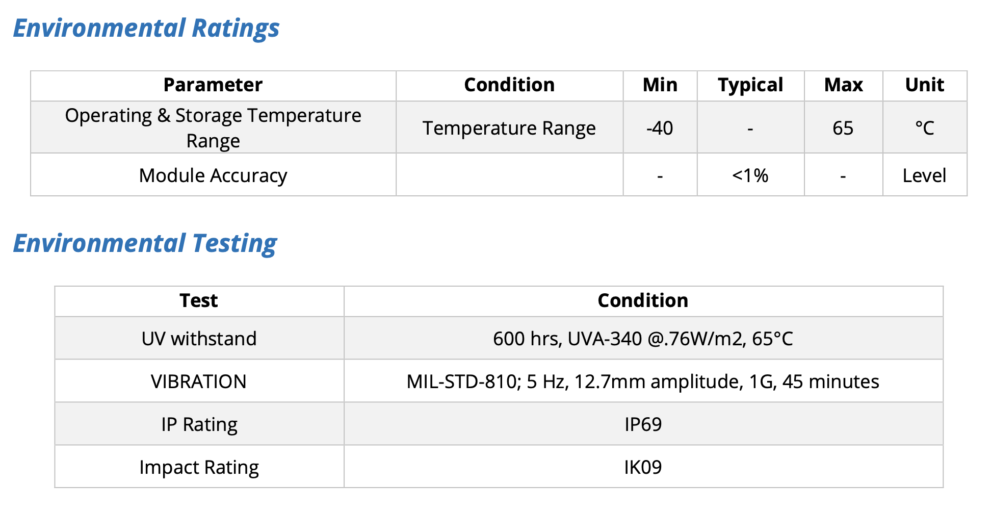 - Polycarbonate housing offers excellent mechanical properties, UV, and chemical resistance.