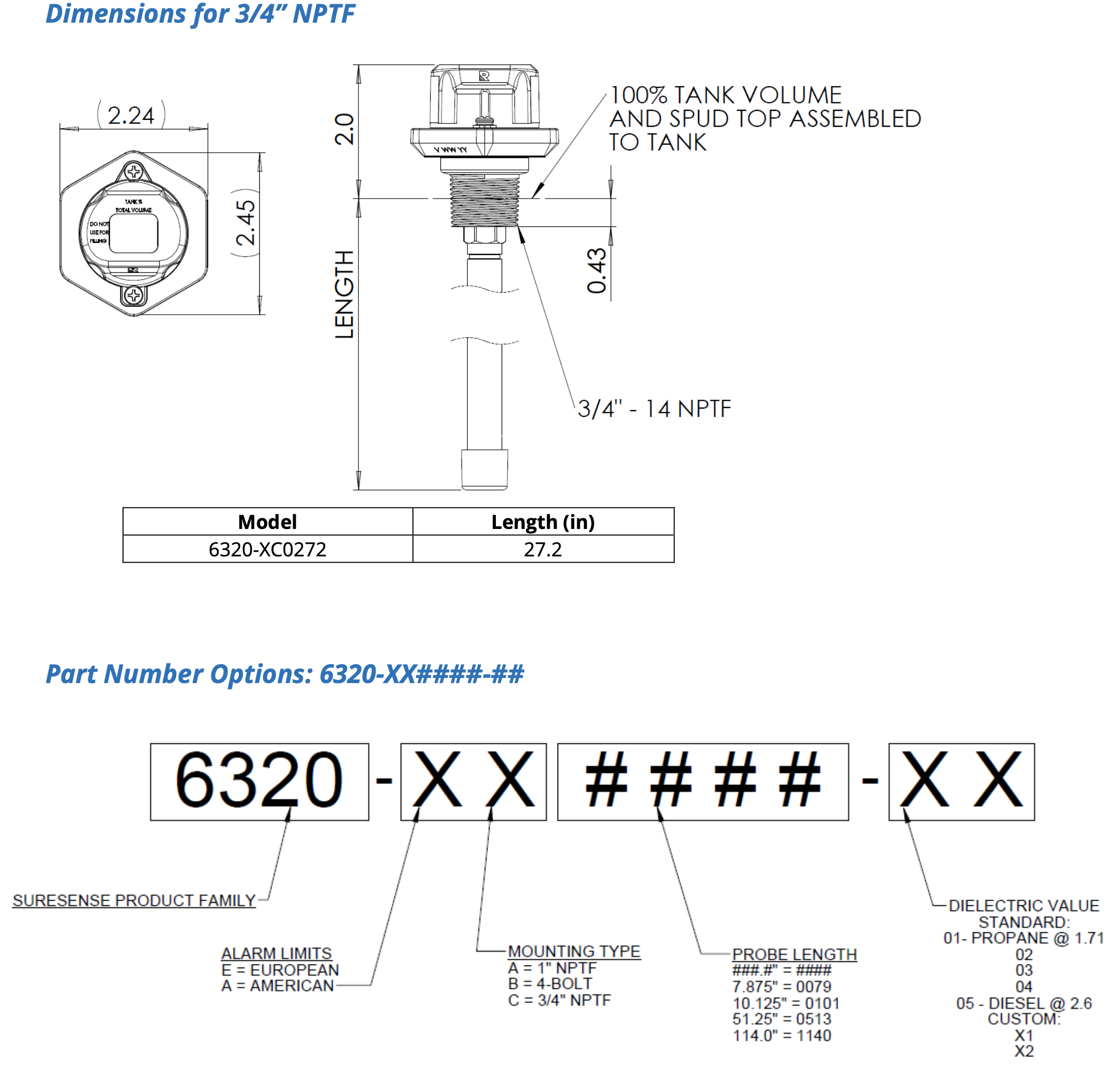 The 6320 SureSense Capacitance Propane Level Sensor measures liquid level in a propane tank without relying on a mechanical system. The capacitive technology used in the 6320 Sensor removes any moving parts inside the tank eliminating interference between the sensor, tank wall, and other components. The replaceable electronics module is battery powered and provides a periodic BLE broadcast output and a visual digital readout. These options not only allow users to read the tank level in person but enable telemetry units to connect and monitor the level as well. The device conforms to typical IECEX/ATEX/UKEX/CSA/NOM/IFT safety requirements for use in Class 1 Division 1 (Zone 0) hazardous locations.